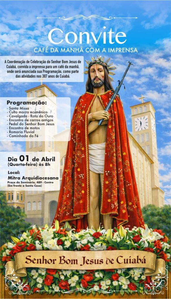 Com uma agenda diversificada, o evento propõe momentos de devoção, integração comunitária e valorização das tradições cuiabanas, reunindo fiéis, lideranças religiosas e a população em diversas atividades que acontecerão nos dias 04, 05 e 08 de abril de 2026.